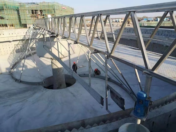 ZBGN 系列刮泥机用于污水处理厂圆形沉定池,将沉降在池底的污泥刮集至池底集泥坑并将池面的浮渣撇向集渣斗,以便进一步处理。