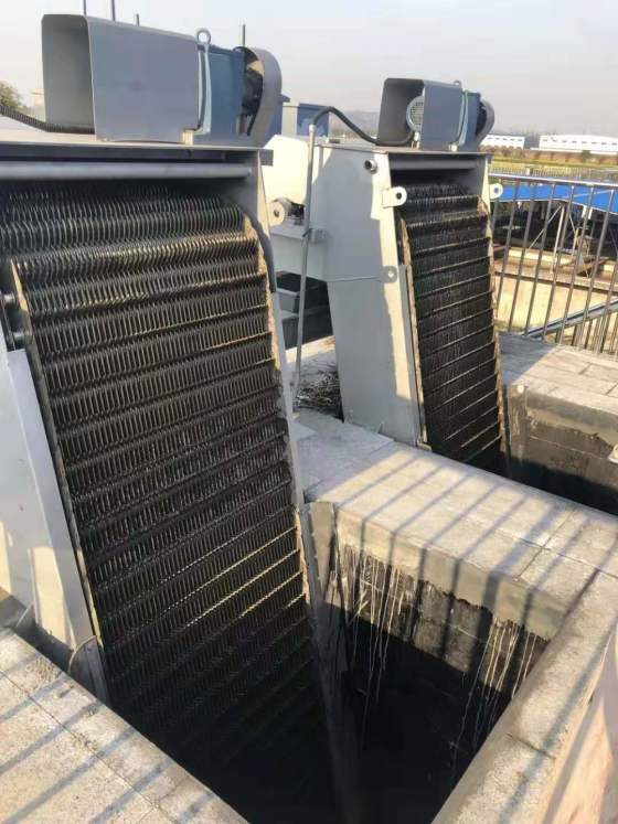 该设备是由ABS工程塑料、尼龙或不锈钢制成的特殊形耙齿,按一定的排列次序装在耙齿轴上形成封闭式耙齿链,其下部装在进水渠水中。当传动系统带动链轮作匀速定向旋转时,整个耙齿链便自上而下运动,并携带固体杂物从液体中分离出来,流体通过耙齿间隙流出去,整个工作状态连续进行。