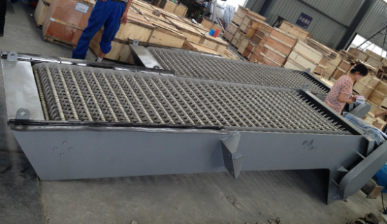 格栅除污机按格栅形式分1)弧形格栅除污机一种固定格栅除污机,其栅条为圆弧形(近视1/4圆周),齿耙在驱动装置驱动下,沿圆弧形栅条将污物推至栅条上方,实现污渣清除。 2)倾斜格栅除污机3)垂直格栅除污机按齿耙垂直向型式分1)臂式格栅除污机2)链式格栅除污机通过链带动的若干组齿耙插入静止的栅条,将污物与水分离的格栅除污机,代号为GL。 3)钢索牵引式格栅除污机4)旋转格栅除污机也叫回转式格栅除污机。没有静止格栅,由密布的齿耙随着回转式牵引链的运动将水中污物打捞出来的格栅除污机,代号HF。